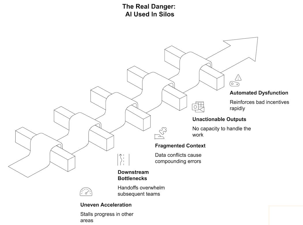 The real danger isn't that AI will fail; it's that applying it thoughtlessly will succeed just enough to create chaos. It speeds up one team while creating massive bottlenecks for the next. It generates reports nobody has capacity to act on. It automates a task without changing the broken incentive structure that governs it.