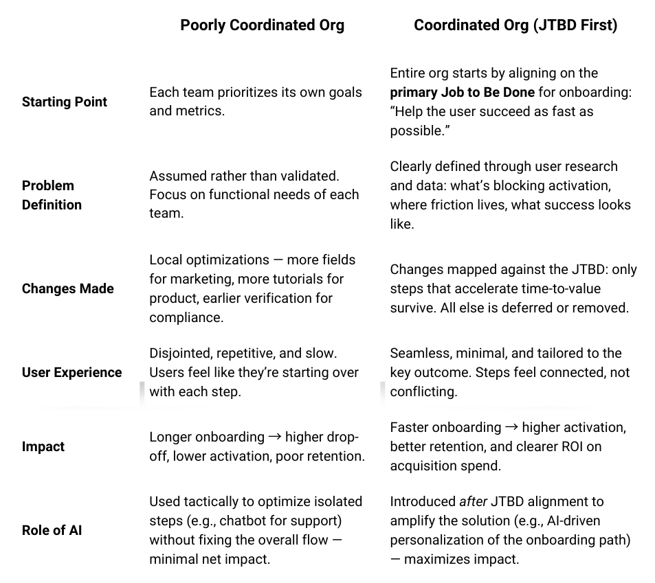 Strong coordination ensures that every improvement compounds — onboarding gets smoother, workflows feel effortless, and the value of your data multiplies over time. Weak coordination guarantees the opposite: local wins that leave the end user unchanged.