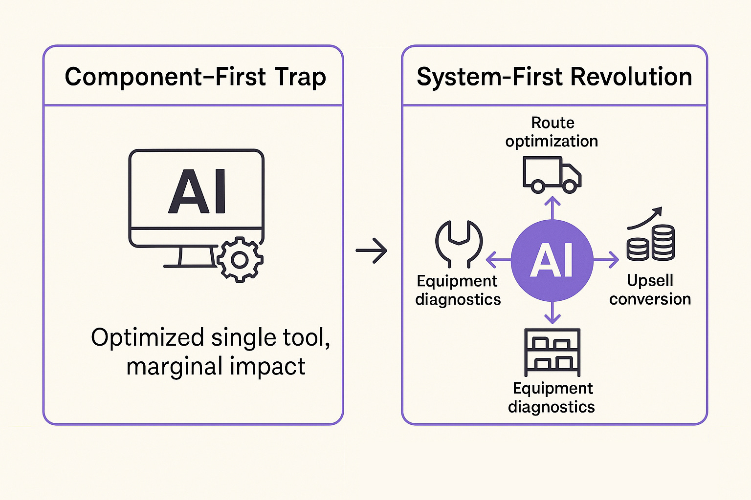 The team built an AI assistant for instant technical documentation lookup. It shaved a few minutes off each visit, but the bigger issues (low upsells, unplanned repeat visits, wasted truck rolls) remained untouched.